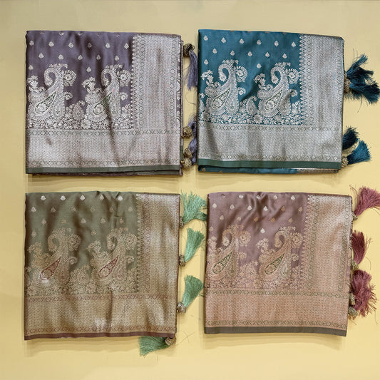 Soft Satin Silk Saree With Zari Border Pallu in Kairi Mango Design with Blouse