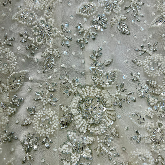 Jazzagals - Delicate Pearl Cutdana Handwork Couture Lehenga SeaShell White