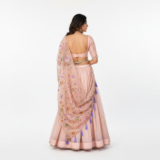 Doli - Sequins and Thread Embroidery All Over Booti Light Pink Lehenga Choli