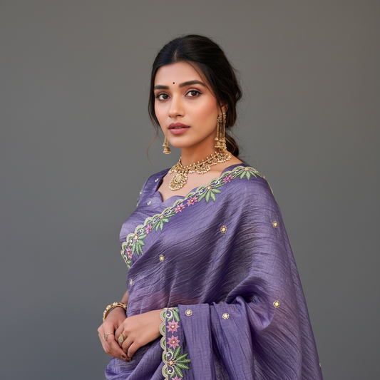 Doli - Gold Crush Sequins and Thread Embroidery Work Lavender Lehenga Choli