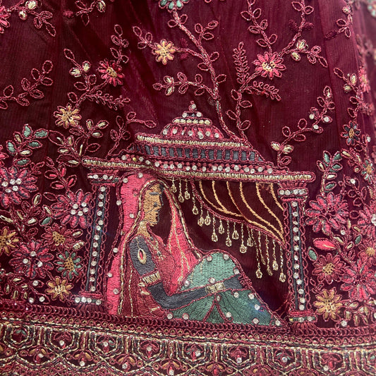 Padmini - Meenakari Threadwork Partywear Lehenga Set Maroon