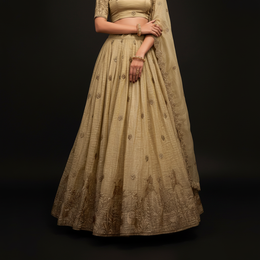 Doli - Gold Crush Sequins and Thread Embroidery Work Chiku Lehenga Choli