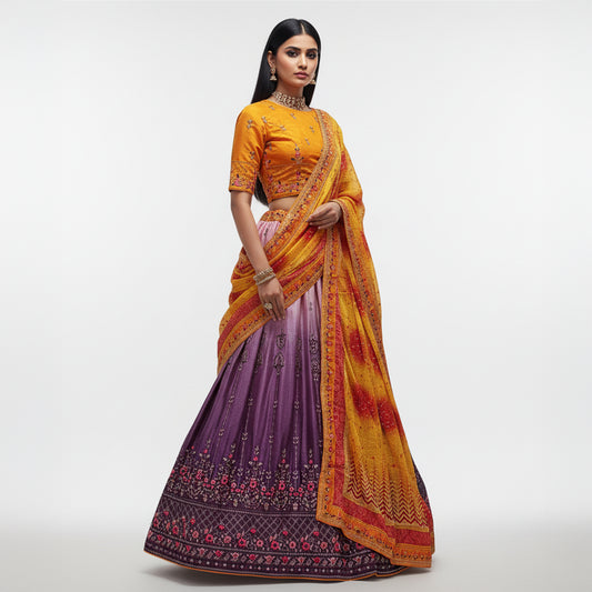 Butterfly - Georgette Multicolor Bandhej Dupatta Lehenga