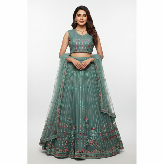 Butterfly - Lightweight Big Flared Teal Blue Sider Lehenga