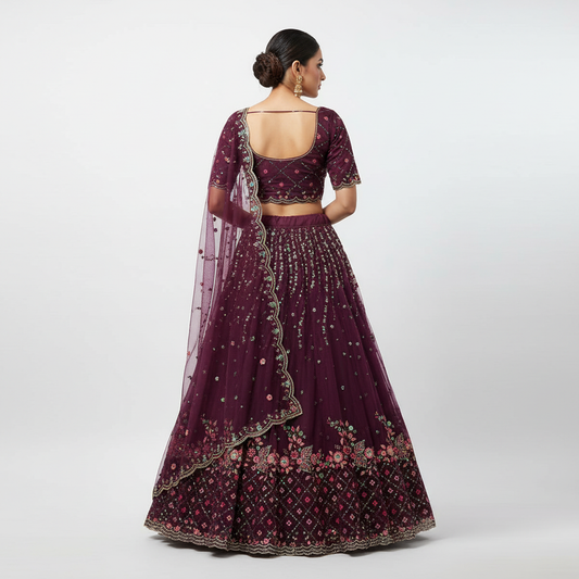 Champagne - Ready-to-Wear Wine Color Silk Sider Lehenga
