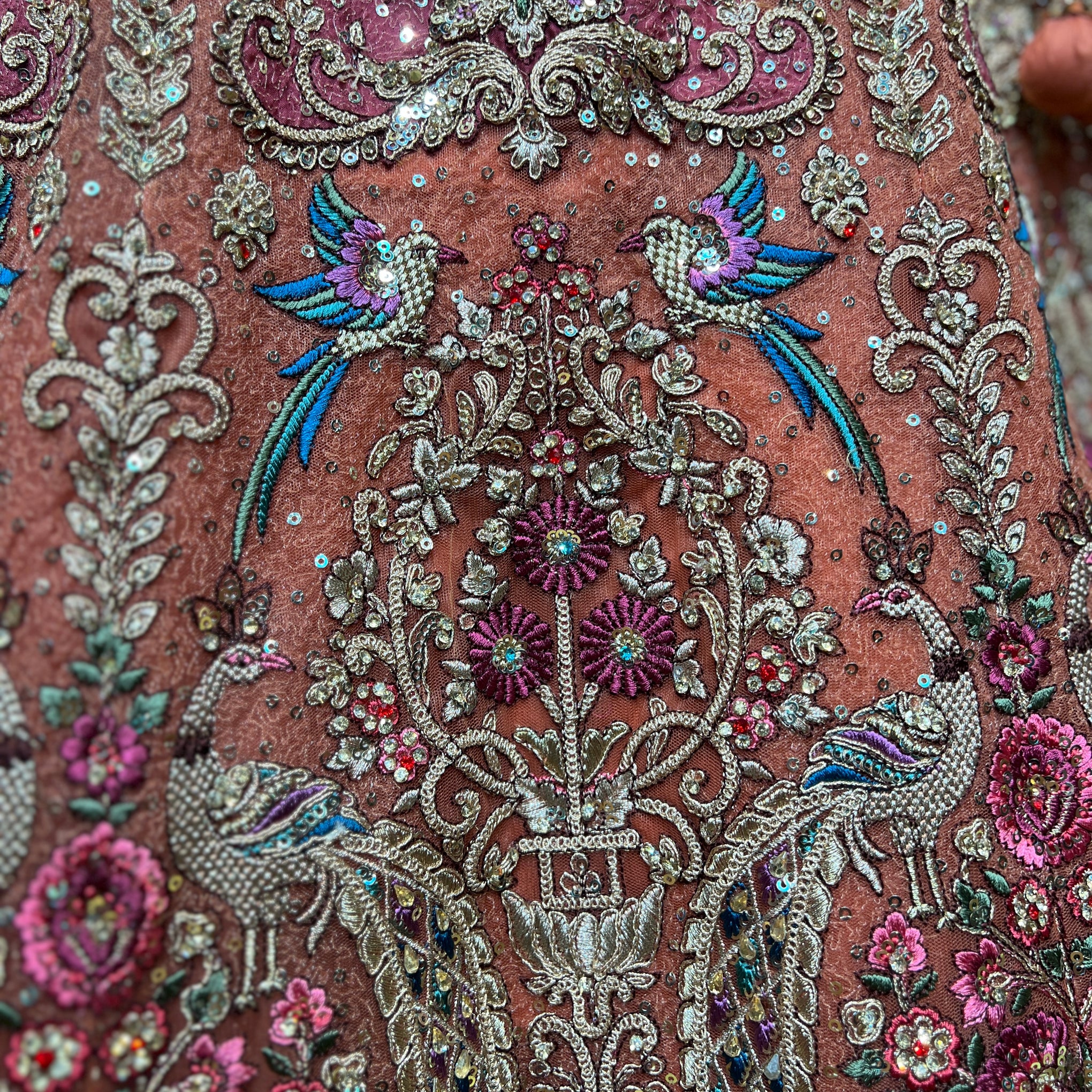 Jazzagals - Orange Designer Lehenga with Peacocks & Birds