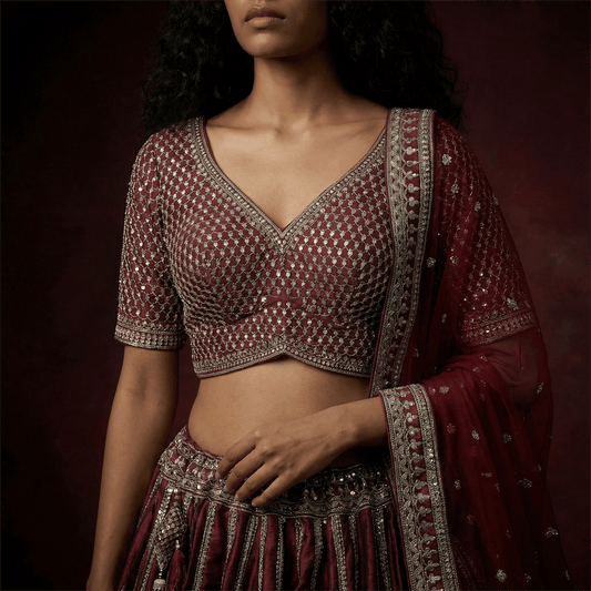 Dulhan in Maroon Lehenga : Minimal Royal Look Sabya Bridal Lehenga