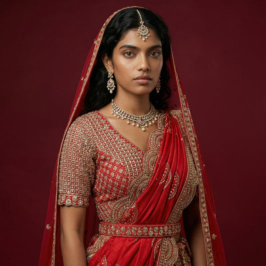 Dulhan in Red Lehenga : Minimal Royal Look Sabya Bridal Lehenga