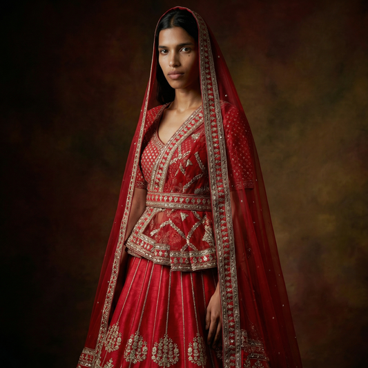 Dulhan in Red Lehenga : Double Dupatta Sabya Bridal Lehenga