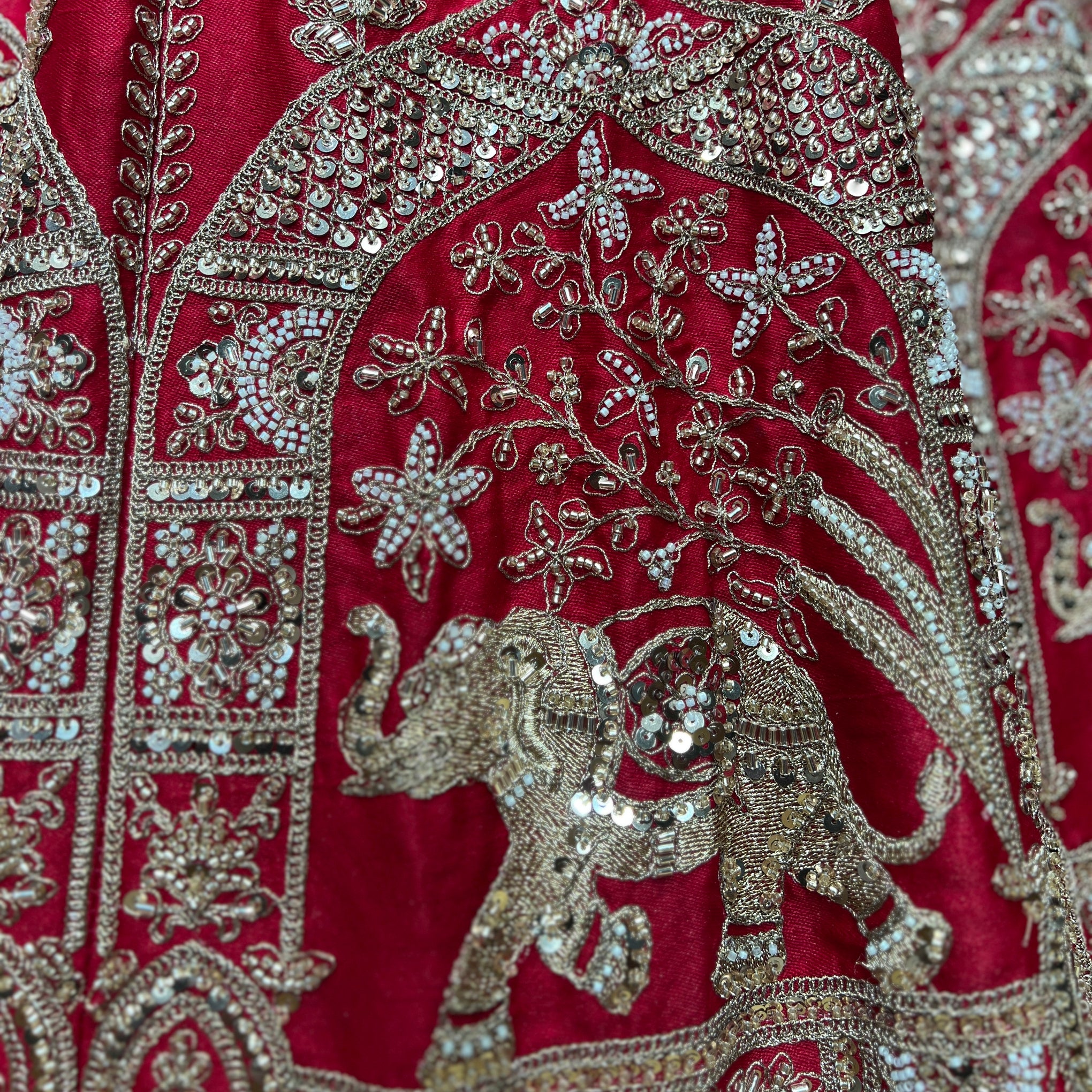 Sangria : Cutdana Pearls Handwork Royal Red Bridal Lehenga