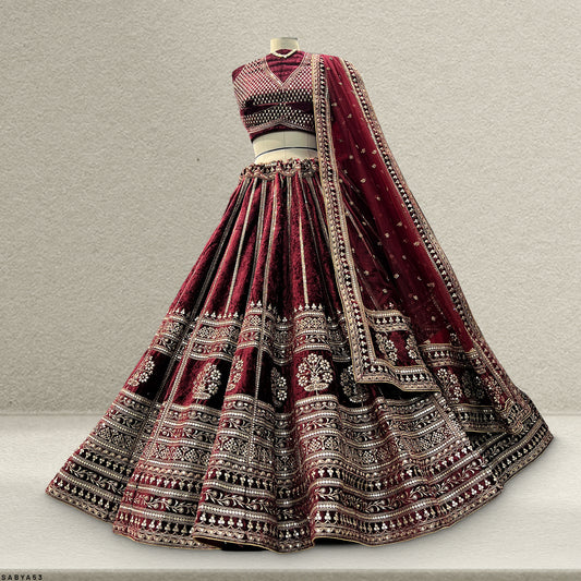 Damsel - 18 Kali Designer Velvet Bollywood Replica Lehenga Royal Maroon