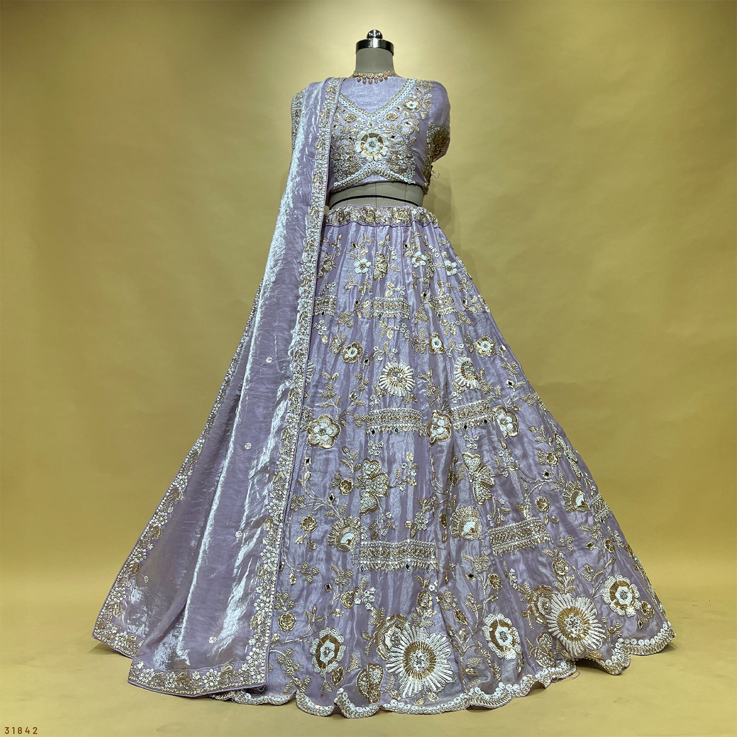 Damsel - Tissue Lehenga Embellished Gorgeous Zari Work Lavender