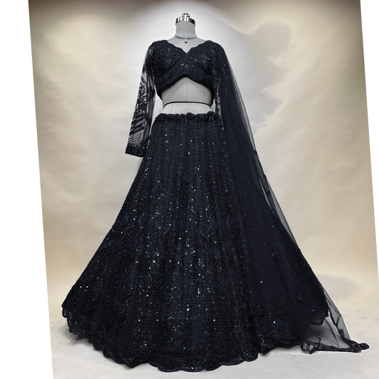 Jazzagals - Monotone Handwork Couture Designer Lehenga Jet Black