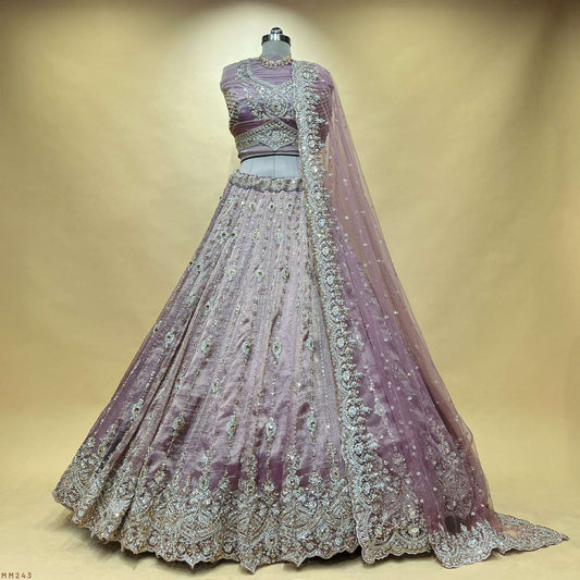 Damsel - Topaz Stone Setting Tissue Handwork Lehenga - Dreamy Lilac