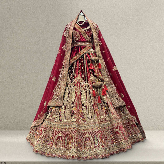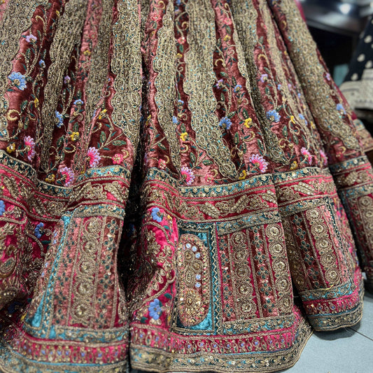Rajgharana - The Velvet Maroon Royal Rajwadi Bridal Lehenga
