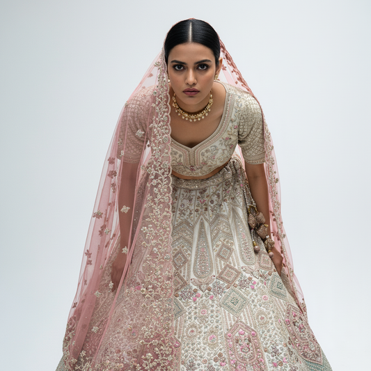 Rosé - Wedding Trousseau in Pastel Hues Off White Lehenga