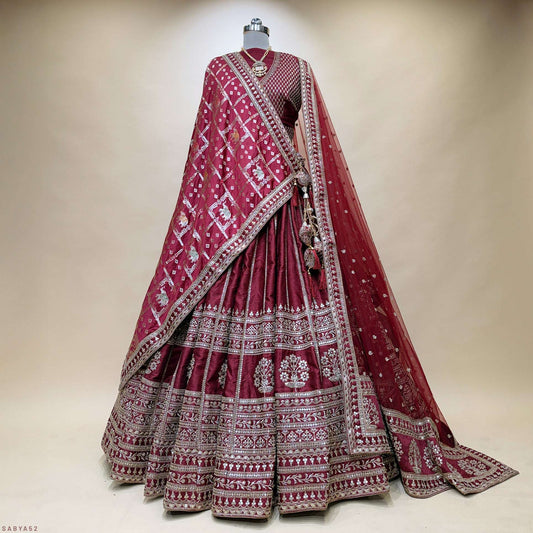 Dulhan in Maroon Lehenga : Double Dupatta Sabya Bridal Lehenga