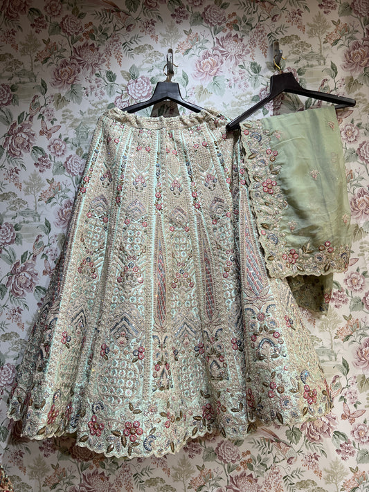 Rosé - Embroidered Raw Silk Sage Green Bridal Wear with Double Dupatta