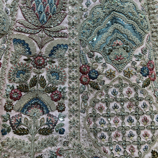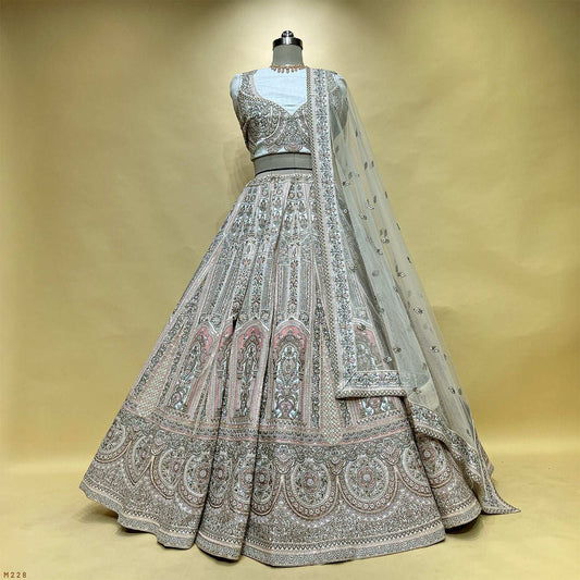 Rosé - Double Dupatta Raw Silk Off White Baby Pink Bridal Lehenga