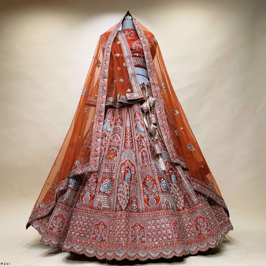 Sangria : Double Dupatta Rust Orange Peacock Bridal Lehenga
