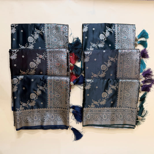 Soft Satin Silk Saree With Zari Border Pallu in Dual Shade with Blouse