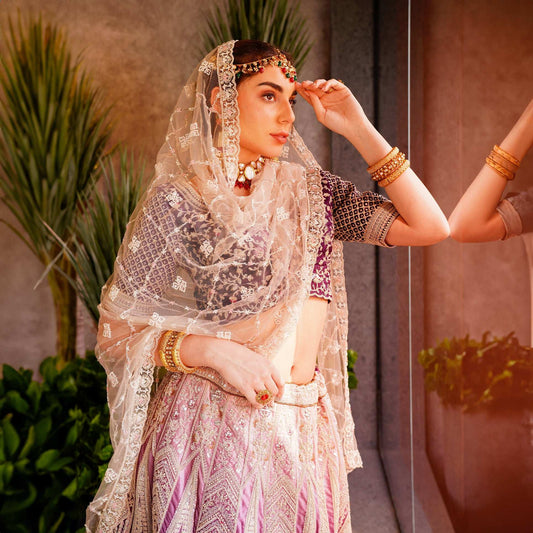 Rosé - Wedding Trousseau in Pastel Hues Ombre Purple Lehenga