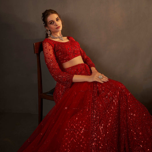 Jazzagals - Designer Replica Red Self Handwork Couture Lehenga