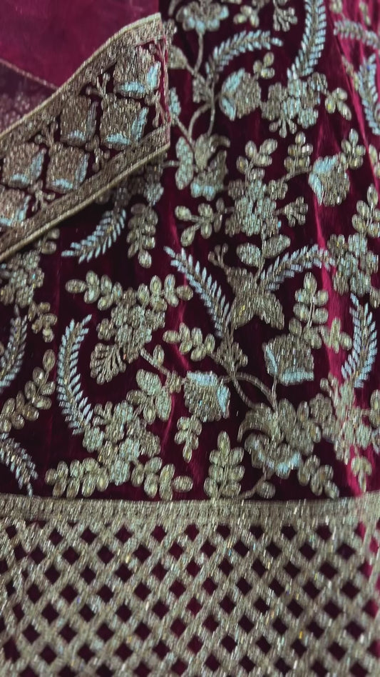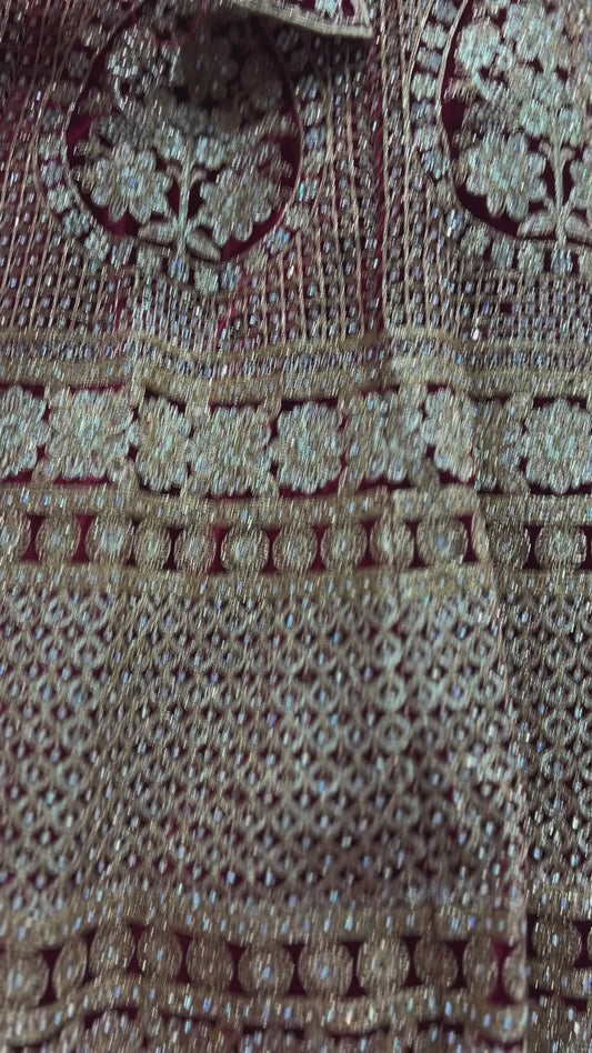 Pagfera - Double Dupatta Maroon & Gold Bridal Lehenga