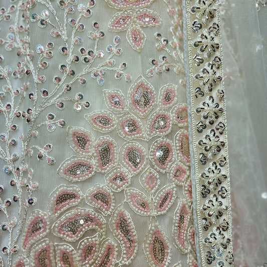 Jazzagals - Delicate Pearl Cutdana Handwork Couture Lehenga SeaShell White