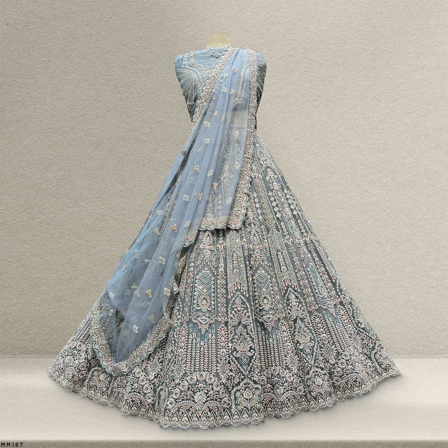 Cherry Blossom - Metallic Blue Reception Engagement Lehenga With Designer Blouse