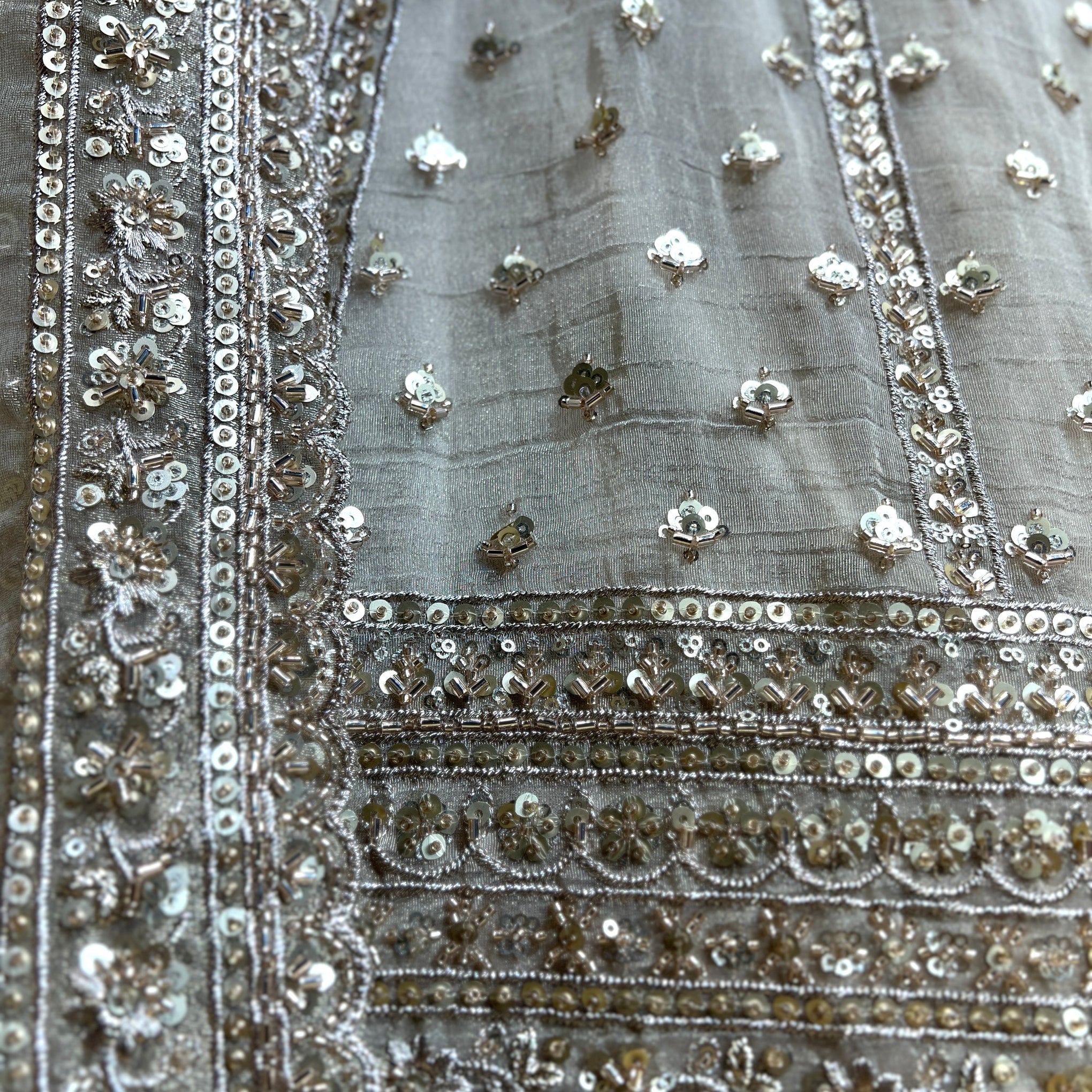 Damsel - Tissue Silk Handwork Ivory Couture Designer Lehenga