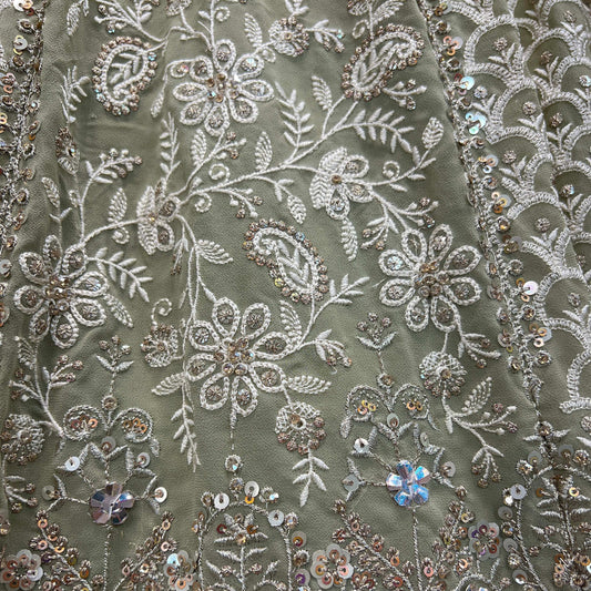 Jazzagals - Delicate Lucknawi Couture Georgette Sage Green Lehenga