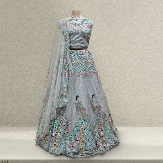 • Butterfly - The Dazzling Peacock Motif Bridesmaid Lehenga Grey
