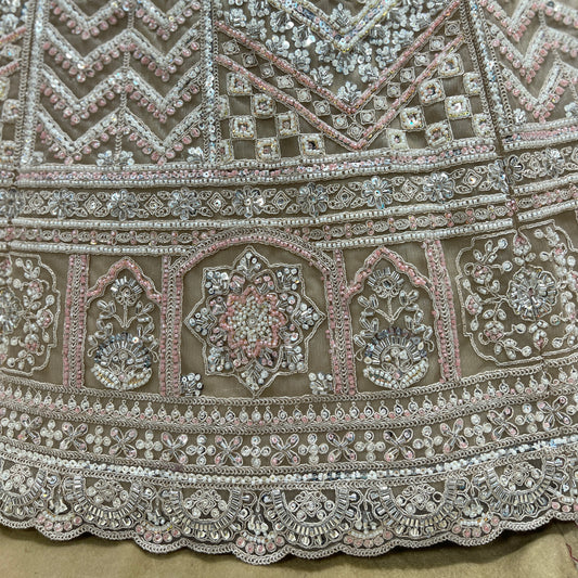 • Jazzagals - Beads & Pearls Handwork Ivory Color Lehenga - JMS Studio