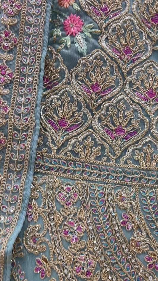 • Cherry Blossom -  The Modern Sky Blue Lehenga for Reception Engagement