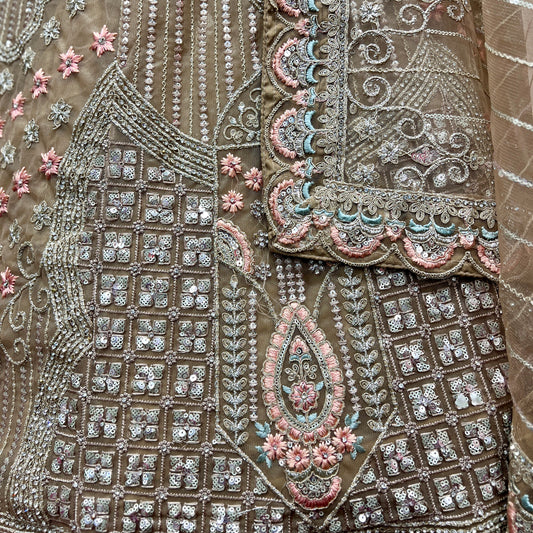 Cherry Blossom - Multi Color Sequins Peach Engagement Lehenga