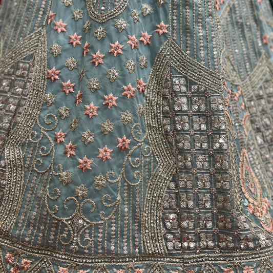 Cherry Blossom - Multi Color Sequins Aqua Blue Partywear Lehenga
