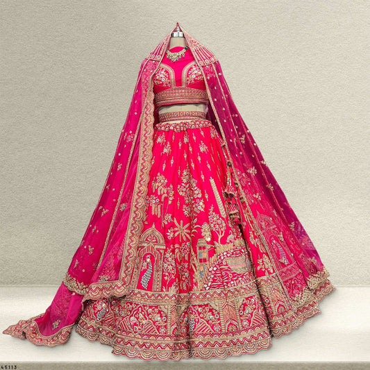 Sangria : Double Dupatta Rani Pink Silk Bridal Lehenga