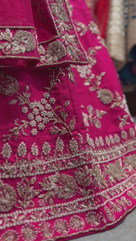 Royal Baggi - Zardosi Handwork Rani Pink Bridal Lehenga