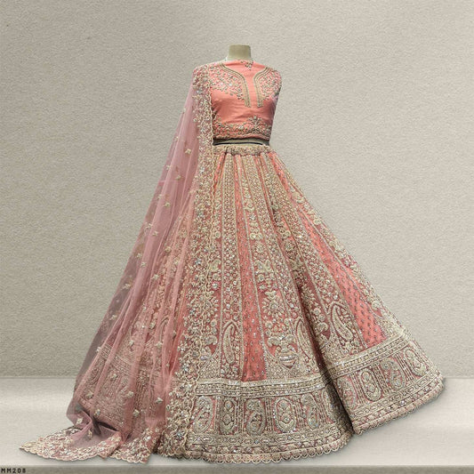 Jazzagals - Beads & Pearls Handwork Pastel Peach Reception Lehenga