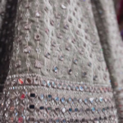 Damsel - Mirror Handwork Metallic Grey Designer Velvet Lehenga