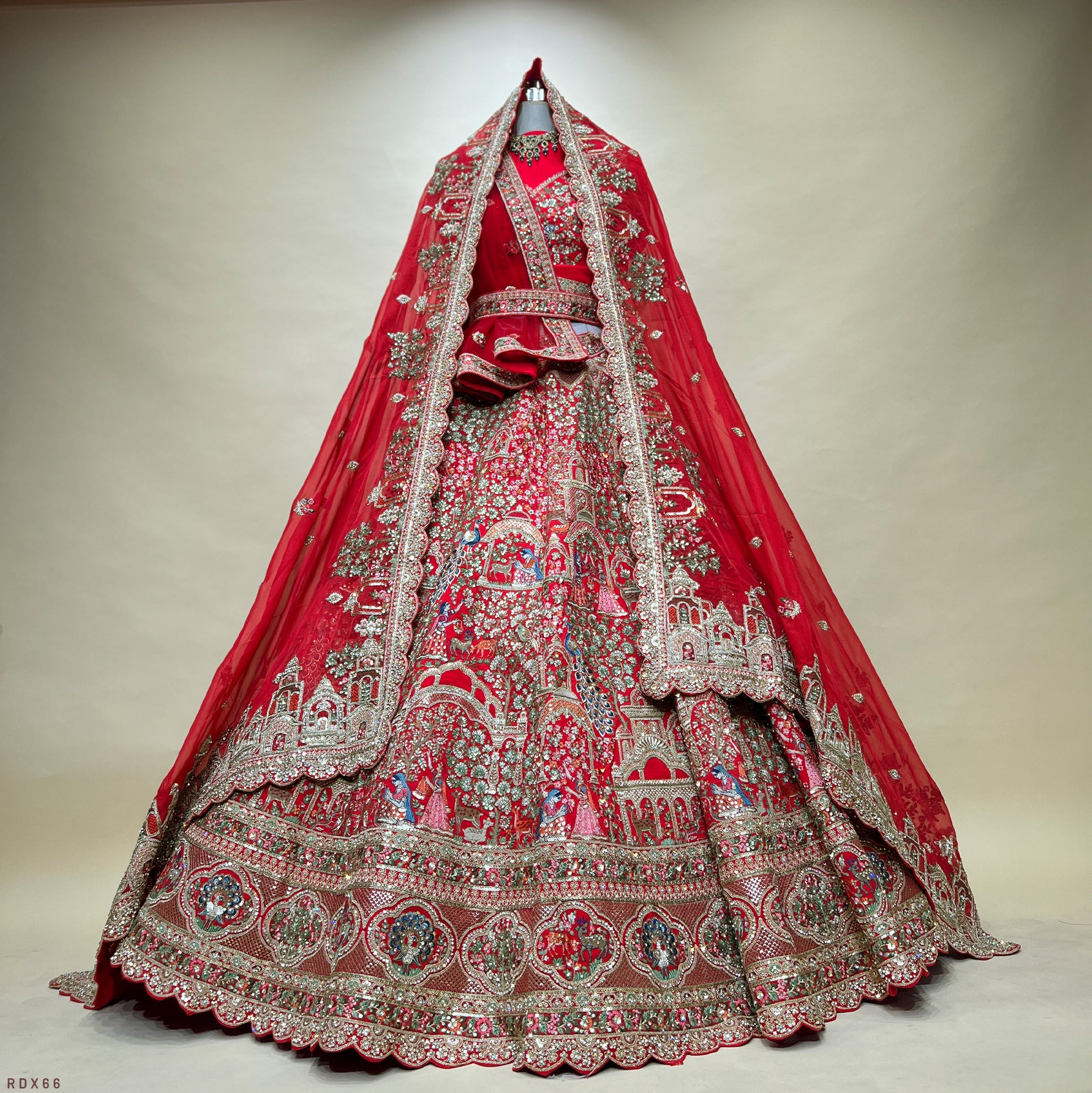 Amrapali - Flowers & Peacock Multi Work Royal Red Bridal Lehenga
