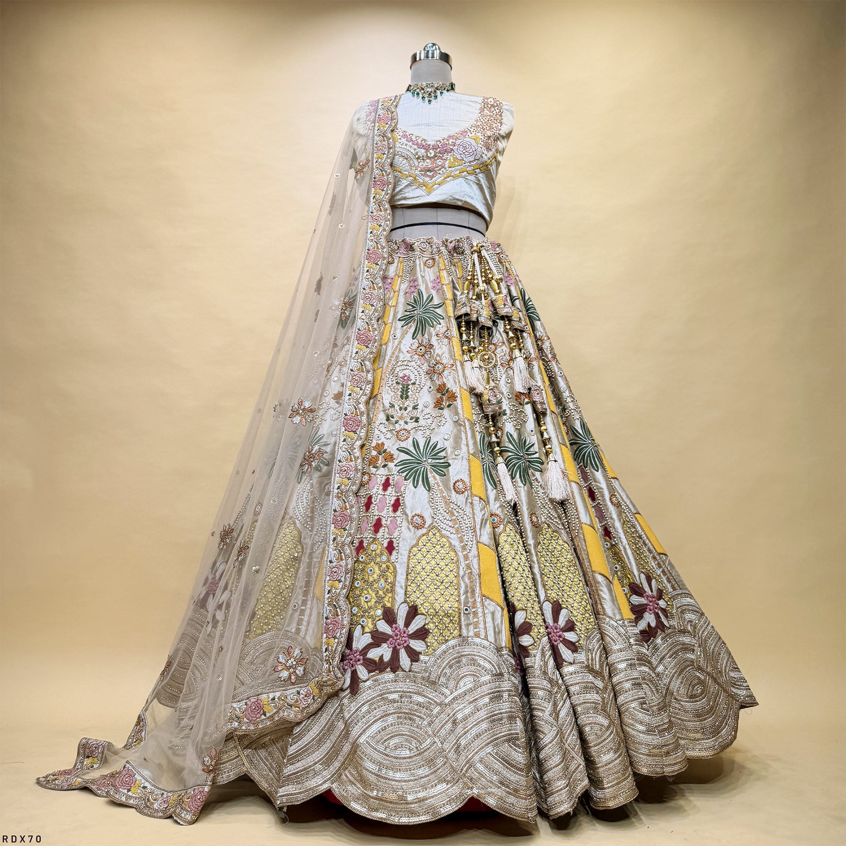 - Lehenga: Raw Silk With Silk Lining and Double Can Can