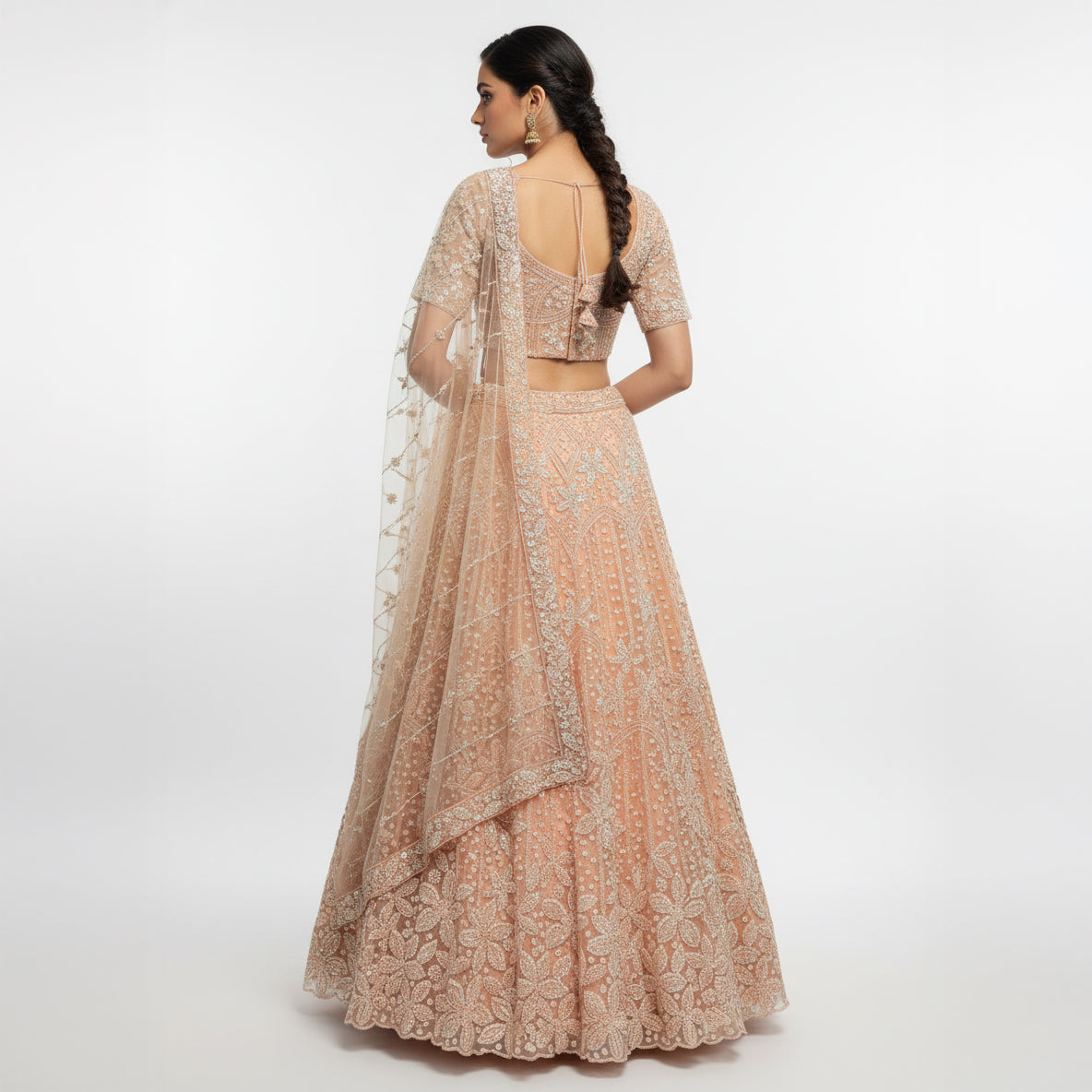 Jazzagals - Beads & Pearls Handwork Pastel Peach Reception Lehenga