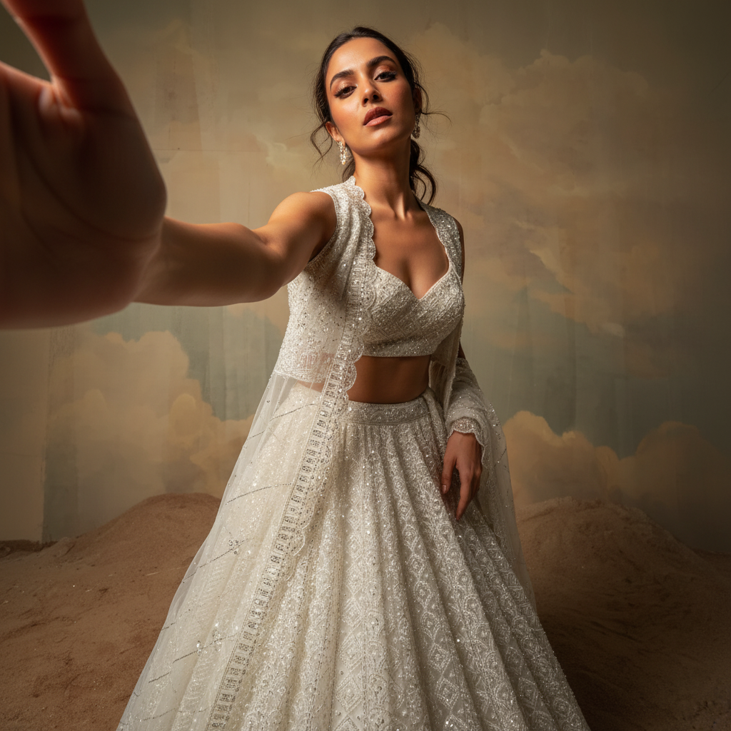 Jazzagals - Beads & Pearls Handwork Off White Reception Lehenga