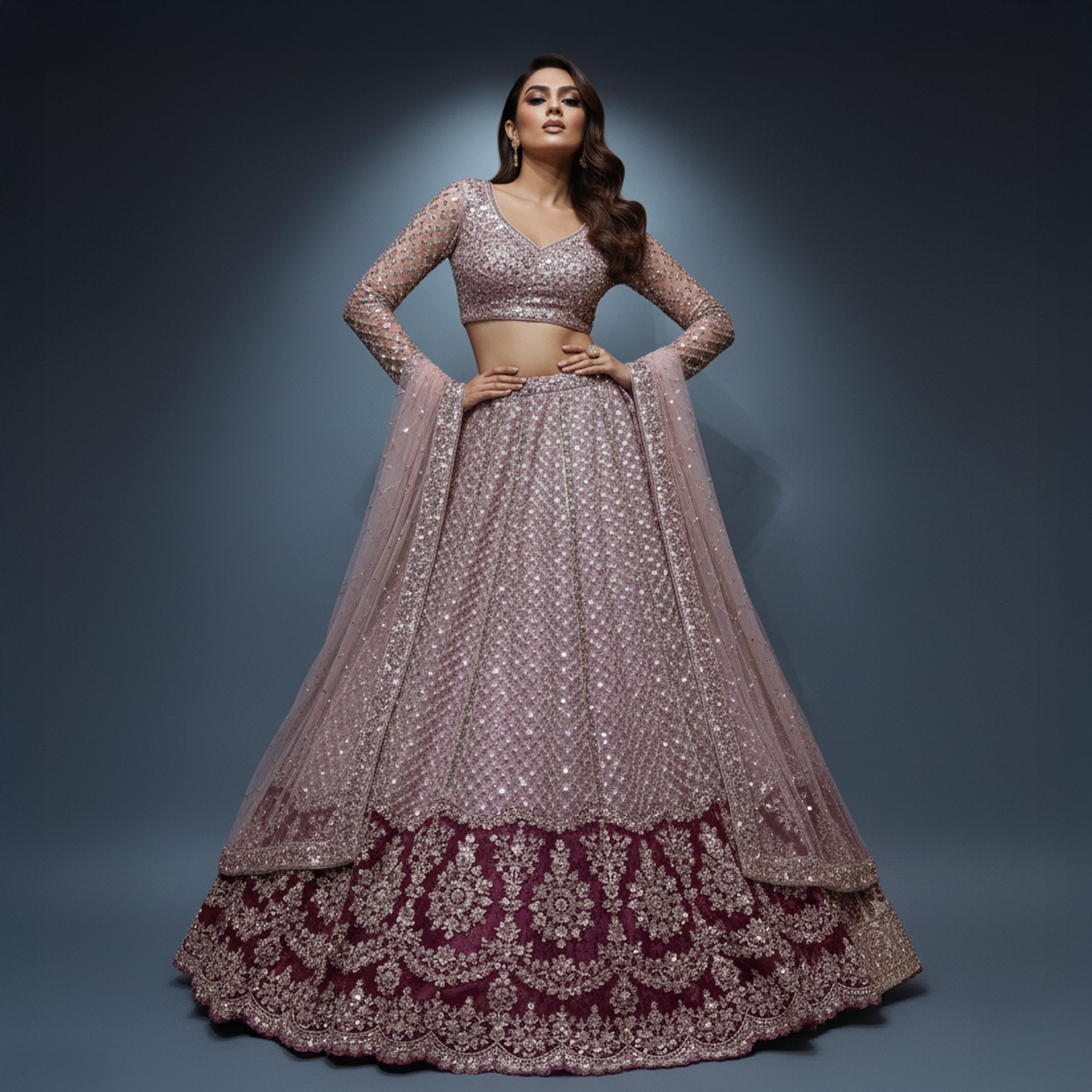 - Lehenga: Soft Net With Silk Lining and Double Can Can