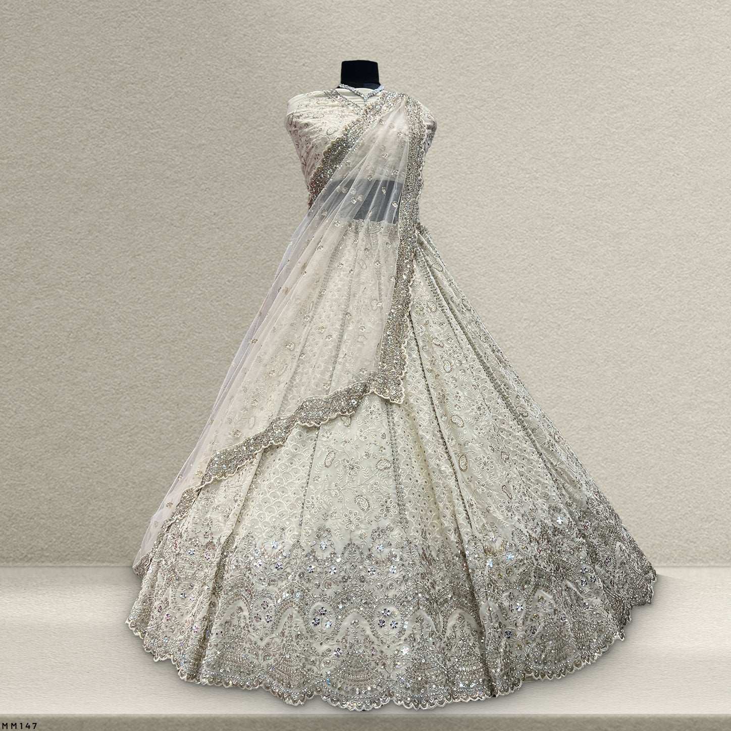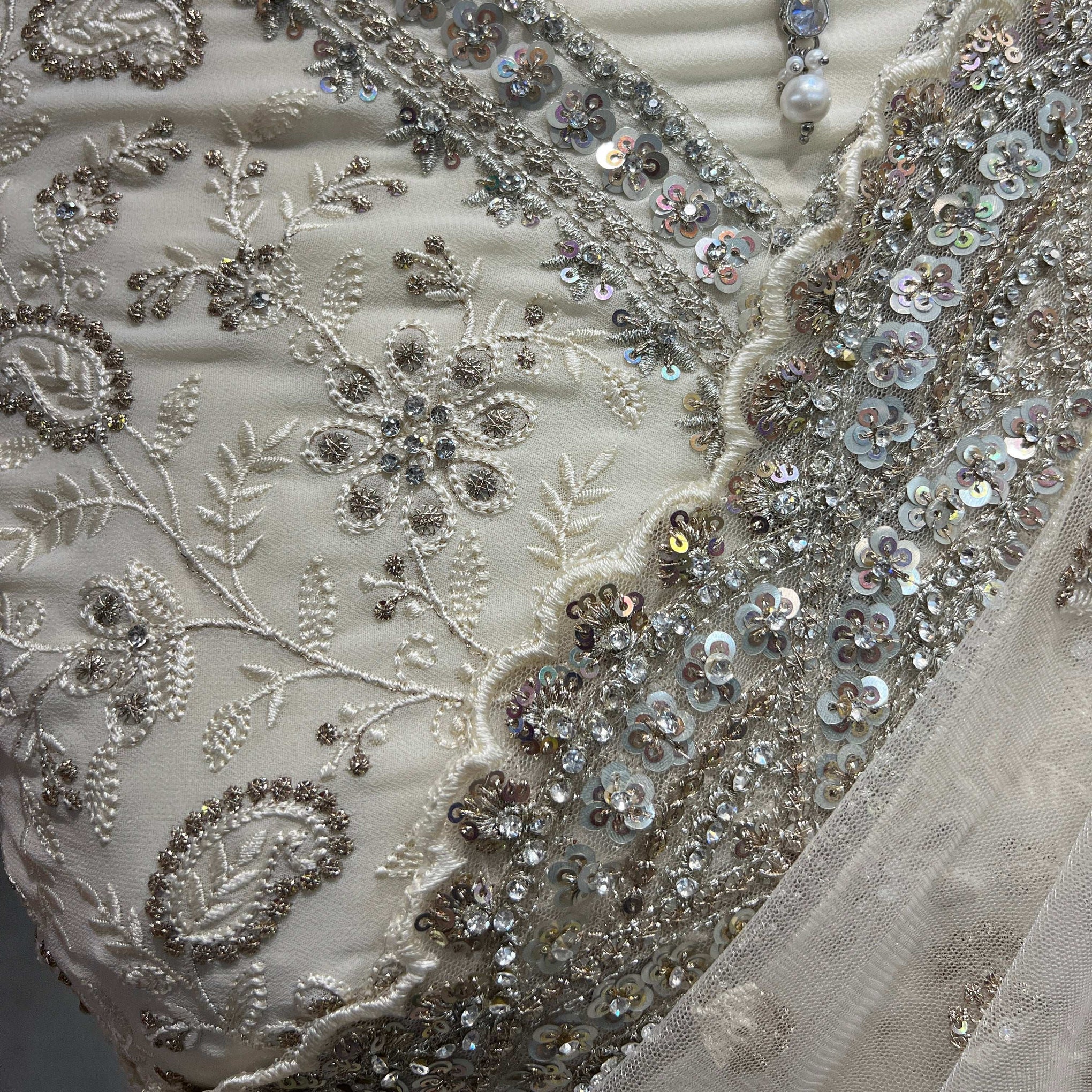 Jazzagals - Delicate Lucknawi Couture Georgette White Lehenga