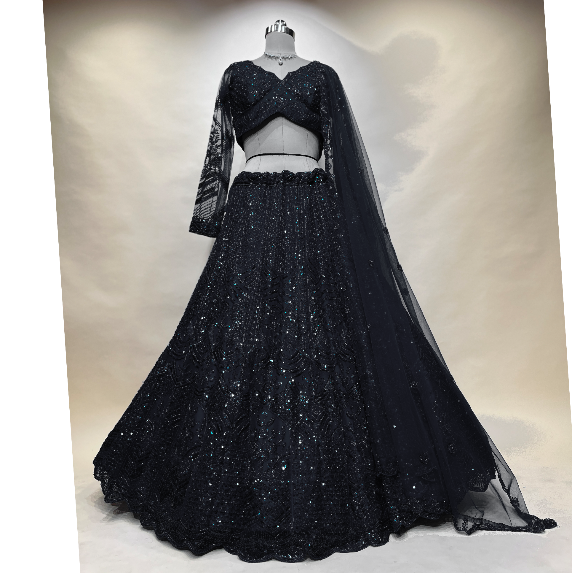 Jazzagals - Monotone Handwork Couture Designer Lehenga Jet Black