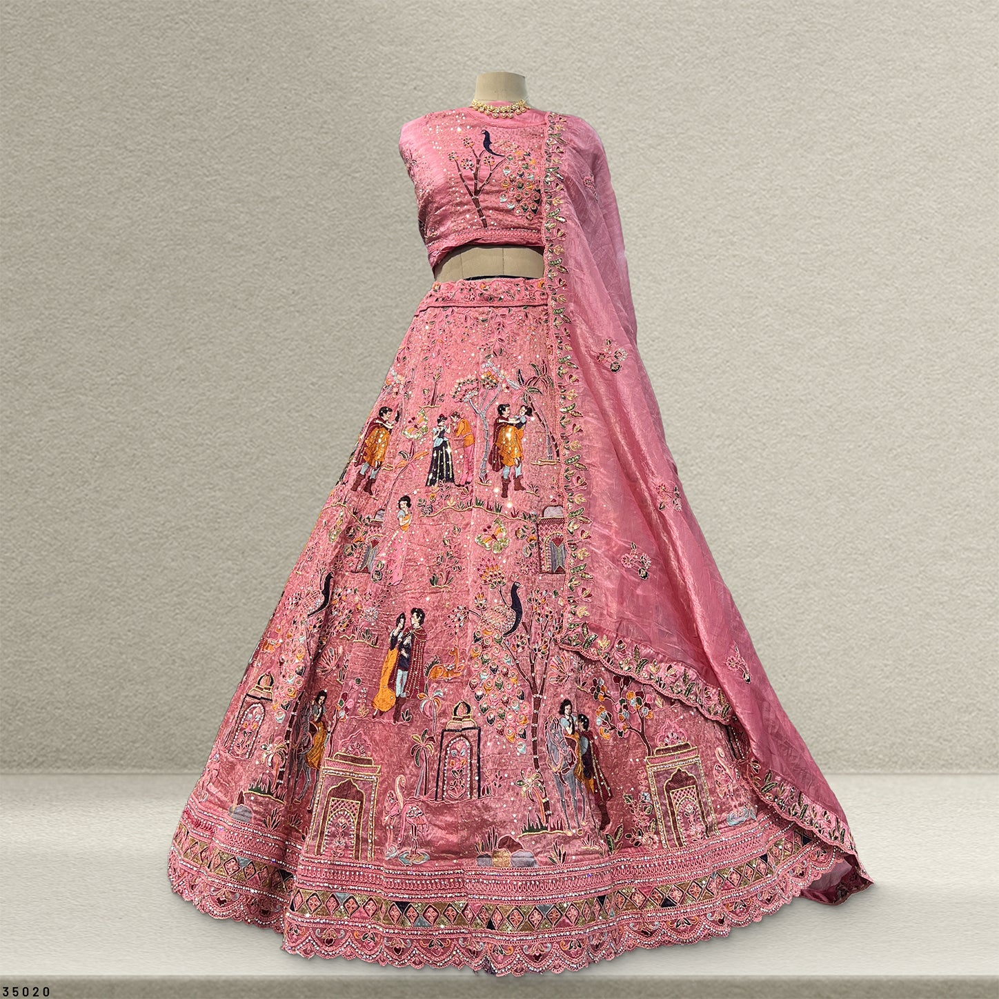 Padmini - Tissue Silk Snow White Concept Designer Lehenga Pink