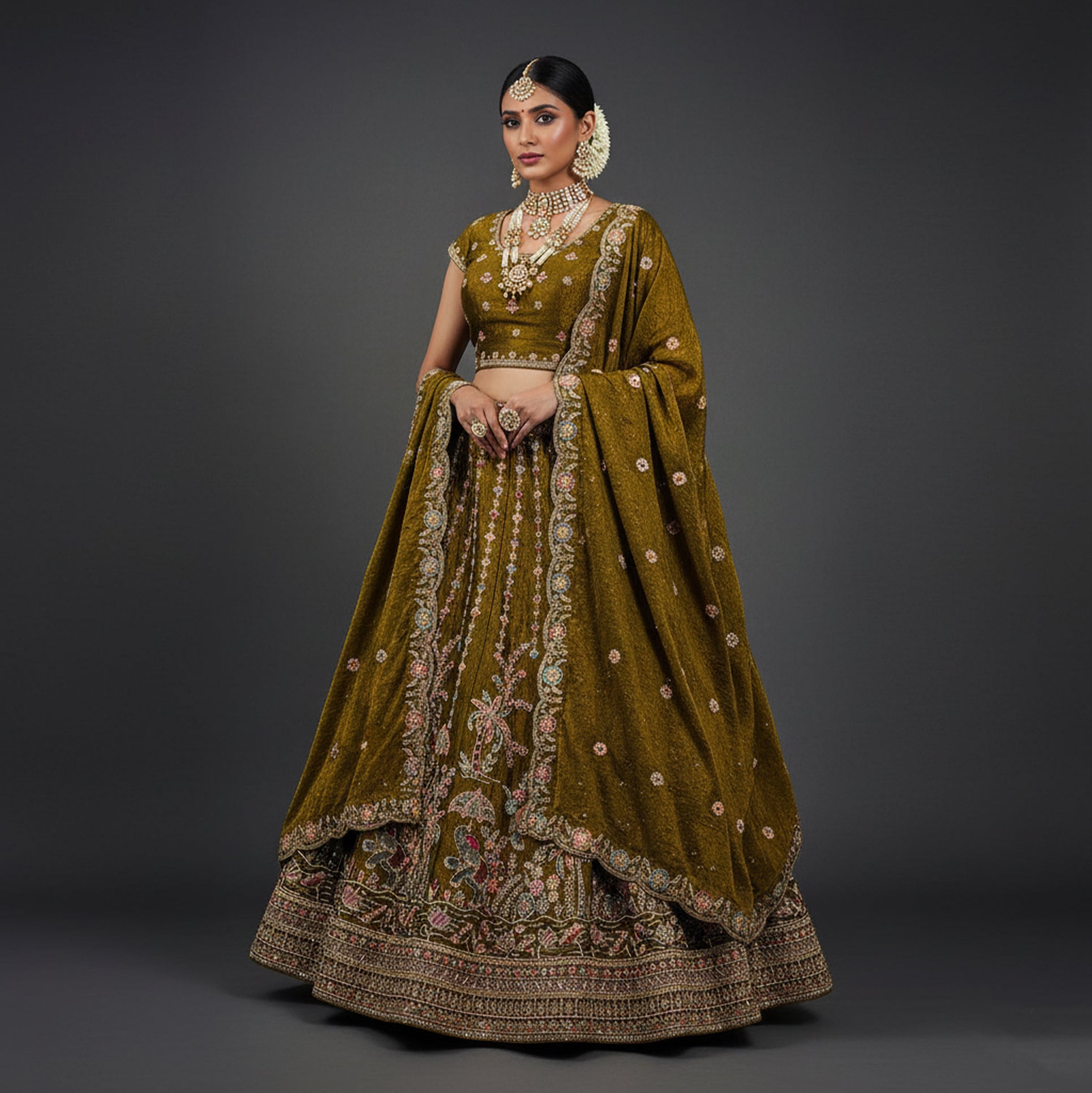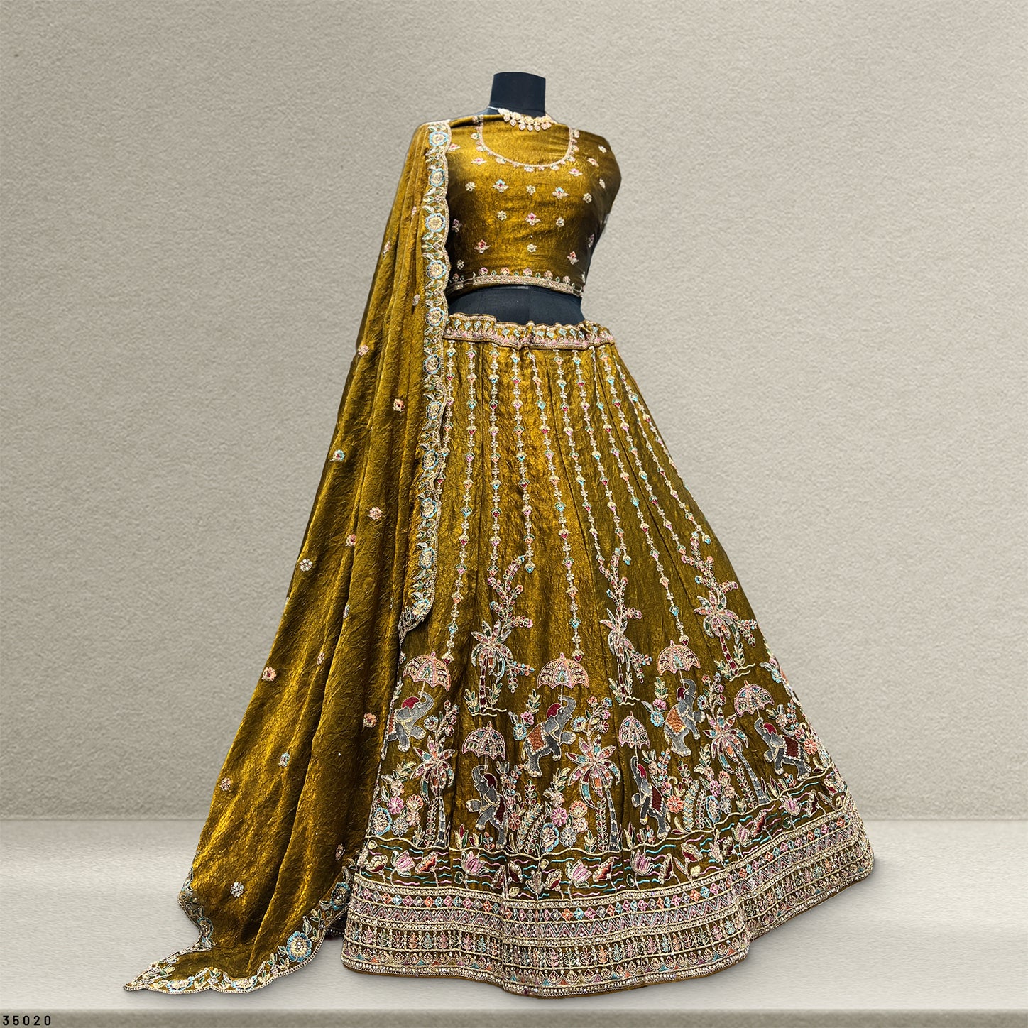 Padmini - Tissue Silk Zari & Resham Work Partywear Golden Brown Lehenga